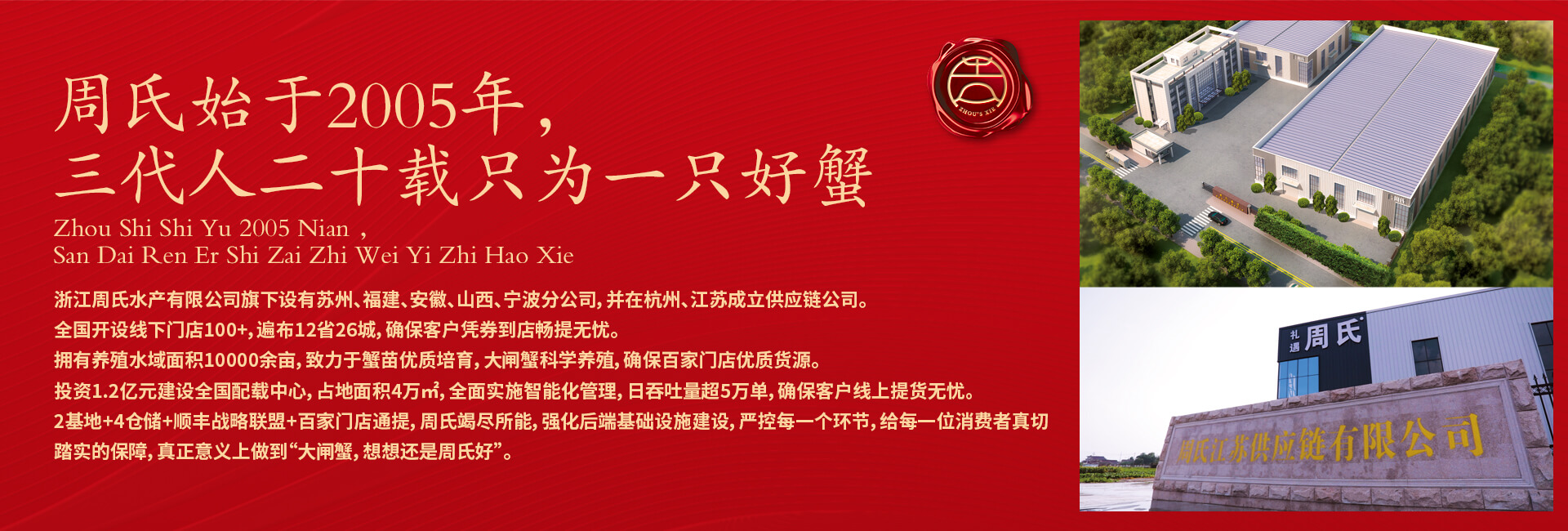 周氏水產(chǎn)精品大閘蟹,14年匠心沉淀,全國87家直營門店,100只大閘蟹只精選最優(yōu)50只。不虛標規(guī)格,不玩???